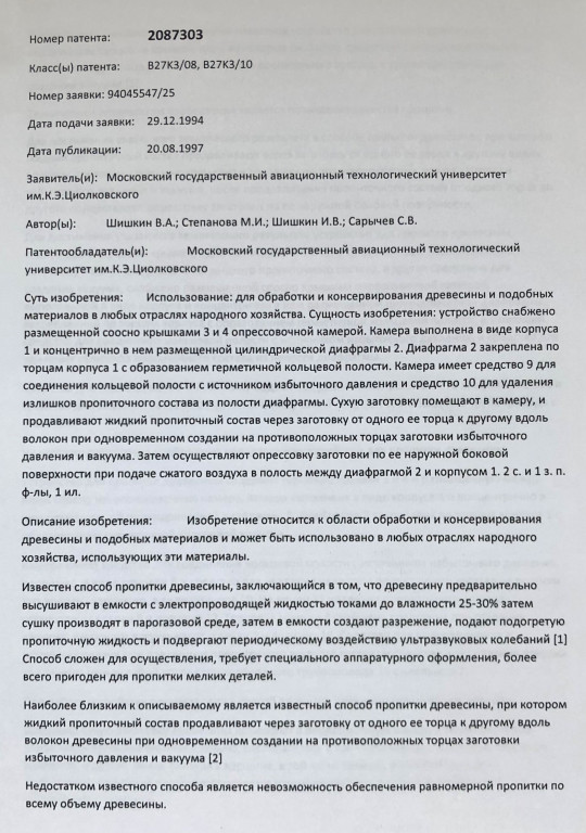 Имею Патент на разработку метода обработки и консервации древесины композиционными материалами. Имею Благодарственные письма от руководителей организаций.